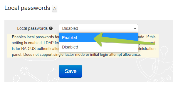 Prior to v0.2.8, if this setting is enabled, LDAP feature gets disabled automatically. On the versions 0.2.8 and higher, LDAP and Local passwords can co-exist: if this mode is enabled and the password for the user is not set or set as 'ldap' authentication will be attempted against the configured LDAP servers.