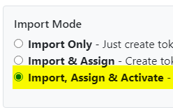 - No bulk assignment: Admins must manually assign tokens to users after import.