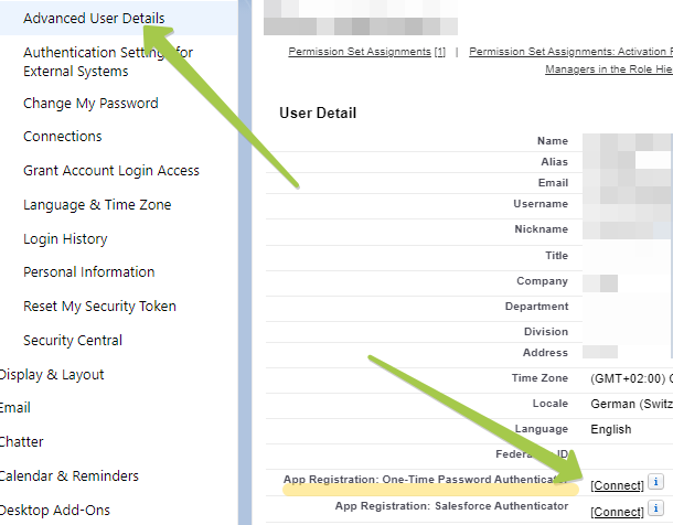 - From the user settings page, click on 'Advanced User Details', then on the right window, find 'App Registration: One-Time Password Authenticator' and click on 'Connect'